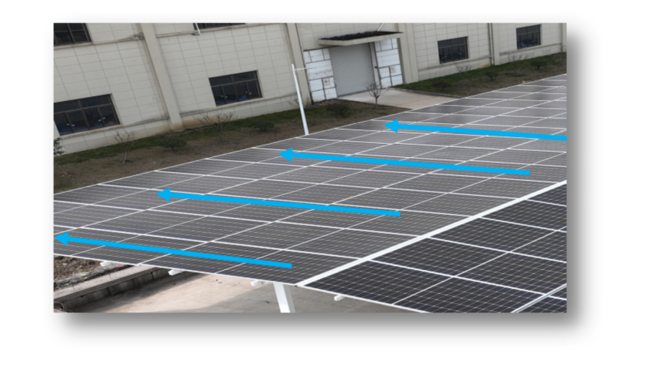 每块产品在安装的时候预留一定的搭接距离,避免产品上下搭接对于电池片有阴影遮挡的影响,同时每块产品安装有限位挂钩,便于施工傻瓜式找到搭接位置。