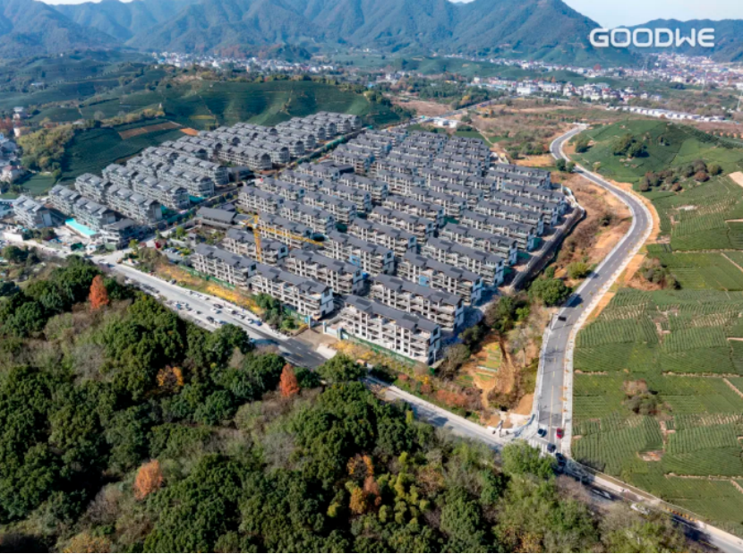 光伏瓦在别墅场景中的差异化,首先体现在美学与功能的双重融合上。以杭州高端中式别墅项目为例,固德威旭日系列光电建材的黑色瓦面与建筑原有的白墙黑瓦风格无缝相融,成为建筑本身的有机组成部分,而非突兀的附加装置,为中式美学注入了现代活力。瓦片本就是传统建筑中兼具防水功能与美学价值的元素,旭日瓦参照传统瓦片形式设计,适配多种传统瓦型,更凭借强大的防水性能延续并升级了这一优势。安装时采用的专利金属挂钩,通过瓦片搭接咬合使胶条形成密不透风的构造,在实现结构防水的同时增强抗风揭性能,为别墅屋面筑起双重安全屏障,这种“美学+防护”的双重属性,是普通屋面材料难以企及的。